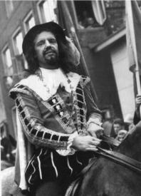Op 17 augustus 1957 trok mijn vader verkleed als Prins Frederik Hendrik, samen met zijn kompaan Generaal Spinola, beiden te paard en de harmonie en trommelaars verkleed in historische kledij, marketentsters, het Spaanse leger in uniform met bijbehorende wapenuitrusting, het voetvolk gewapend met slag- en steekwapens, katapulten en proppenschieters, paarden en karren ten strijde naar Lichtenvoorde. De Grollenaren hebben er duidelijk zin in om de Lichtenvoordenaren mores te leren. Op de achtergrond van de foto rijdt Prins Frederik Hendrik te paard.